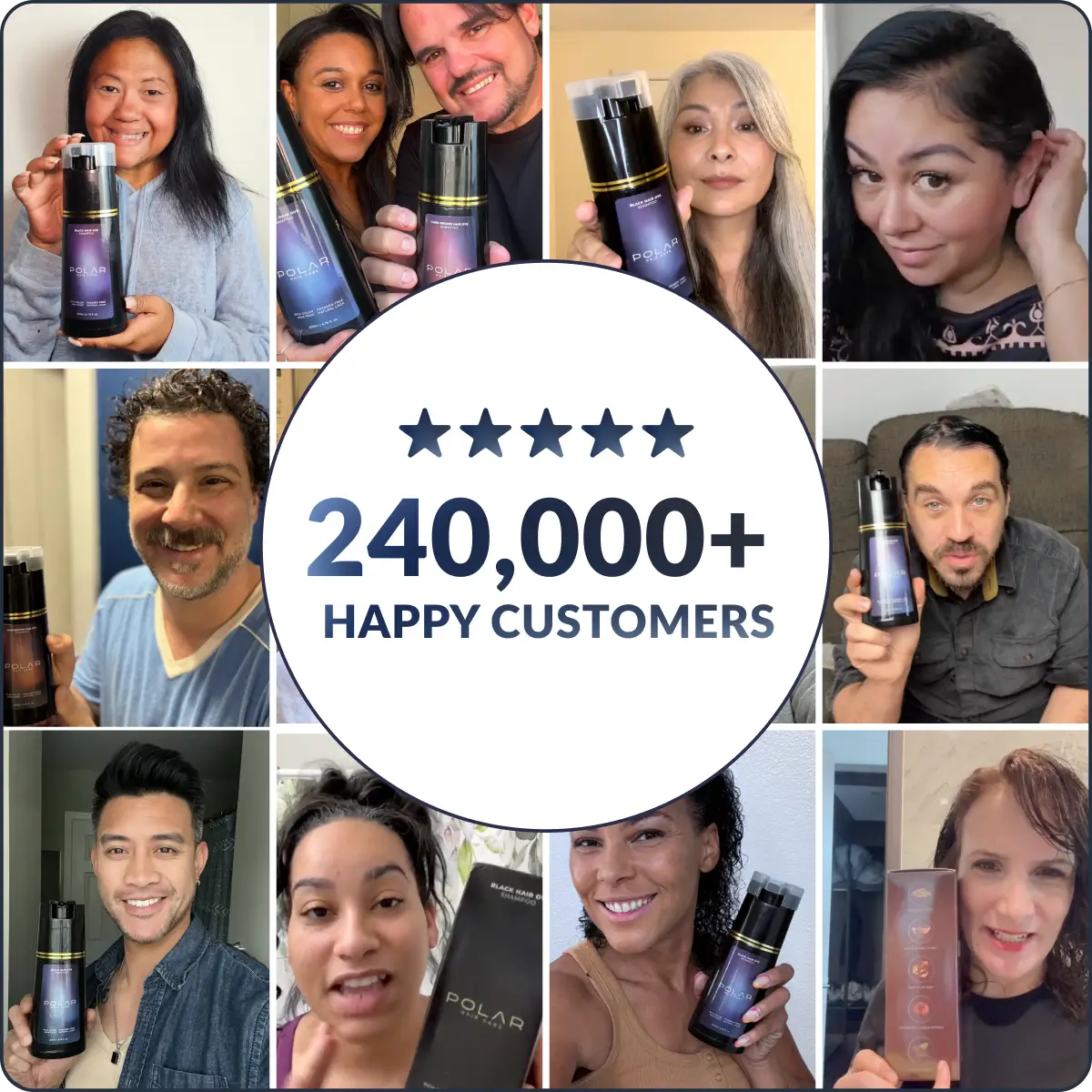 Thats why we created PolarHair—a 3-in-1 dye shampoo that covers grays in just 10 minutes, with no mess, no harsh chemicals, and zero compromises.